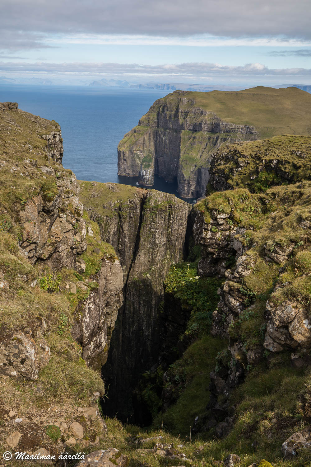 Vaikka patikkapolut olivat Färsaarilla aika helppokulkuisia ja maasto ei ollut kovin vaativaa, niin useat patikkapolut päätyvät näiden hurjien jyrkänteiden reunalle, joten sumulla ei tosiaan olisi sinne mitään asiaa. Me onneksi Saanan kanssa näiltä sumuilta säästyttiin.