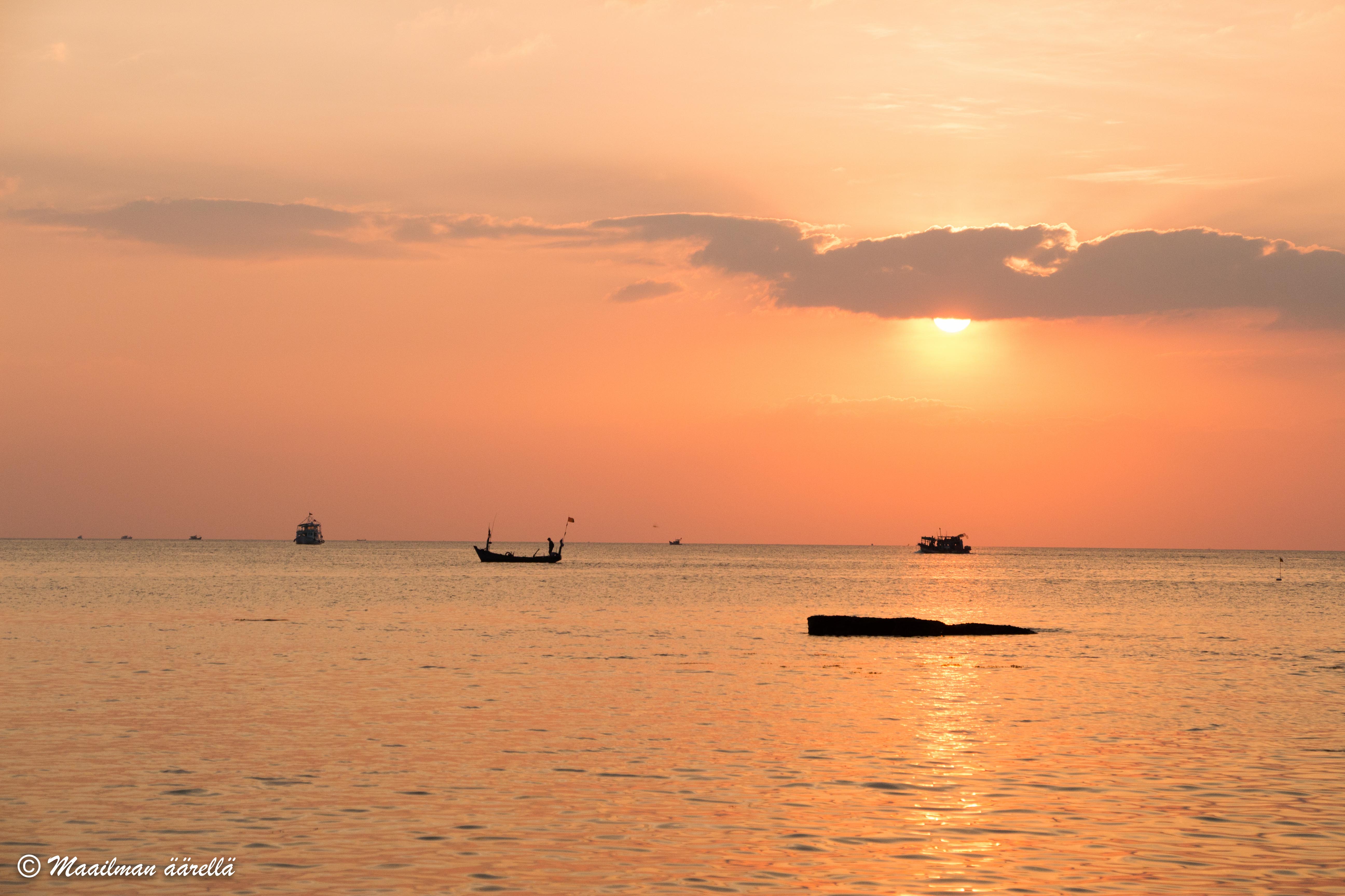 19.2.2016 at 13:03Kun käveltiin Phu Quocin rantaa pitkin, törmättiin jopa miehiin, jotka korjailivat veneitä ja olivat virittäneet jonkin putken mereen, ja laskivat siitä sitten kaikki koneöljyt jne. suoraan sinne mereen. Ranta oli ihan mustana öljystä! Ei siellä tietenkään jätehuolto ole kehittynyt niin kuin länsimaissa, mutta luulenpa, että monet eivät yksinkertaisesti välitä – valitettavasti.
